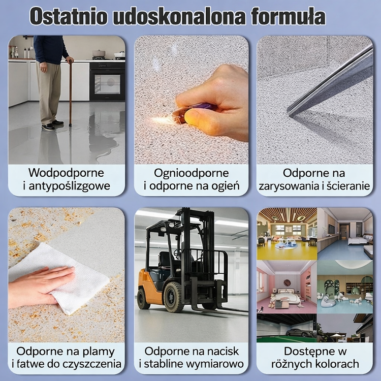💪 Ekstremalna wytrzymałość: Wytrzymuje największe obciążenia, nacisk SUV-a i intensywne użytkowanie, zapewniając długofalową ochronę podłoża. ⚠️ To nie jest zwykła farba z marketu: To zaawansowana tytanowa powłoka. Samopoziomująca formuła idealnie wypełnia pęknięcia, tworząc gładką taflę bez wysiłku. ⏱️ Ekspresowy efekt: Wysycha już w 2 godziny! Odnów swoją podłogę łatwo, szybko i bez zbędnego demontażu.